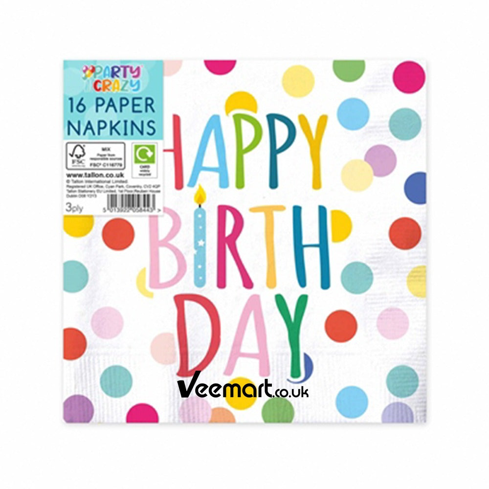 - Party Crazy Happy Birthday 3-Ply Disposable Party Napkins - Pack of 16